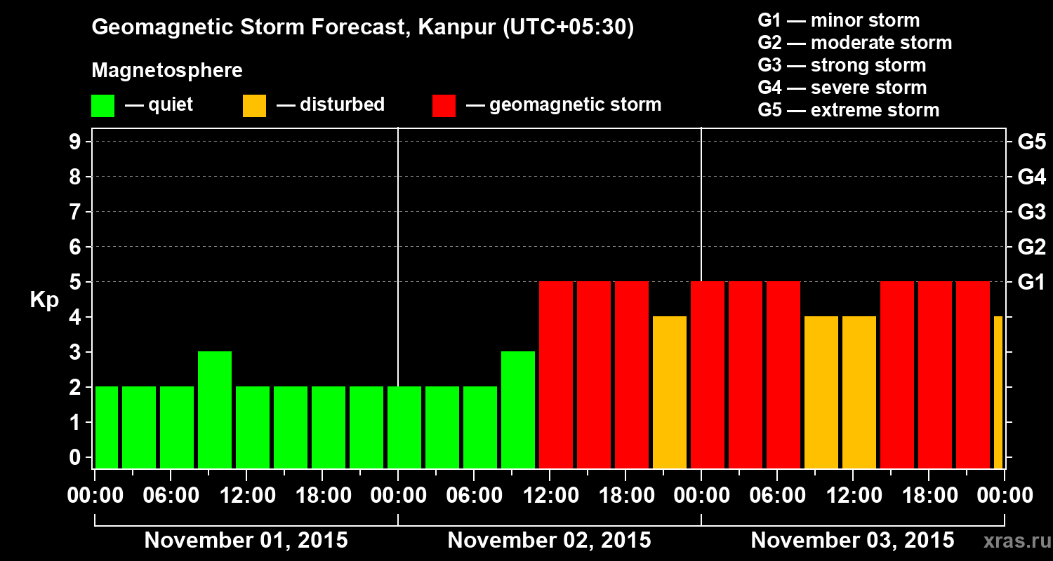 Geomagnetic storm forecast in Kanpur for Nov 01, 2015