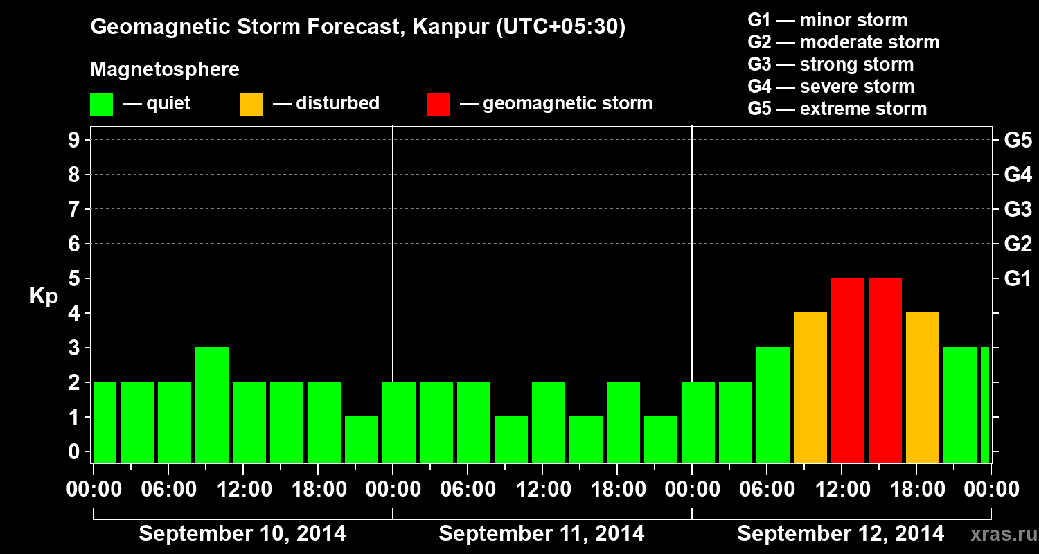 Geomagnetic storm forecast in Kanpur for Sep 10, 2014