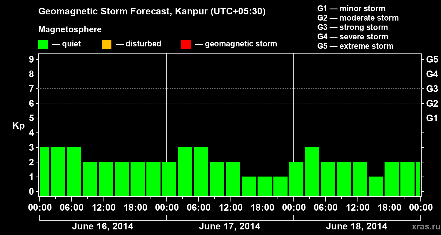 Geomagnetic storm forecast in Kanpur for Jun 16, 2014