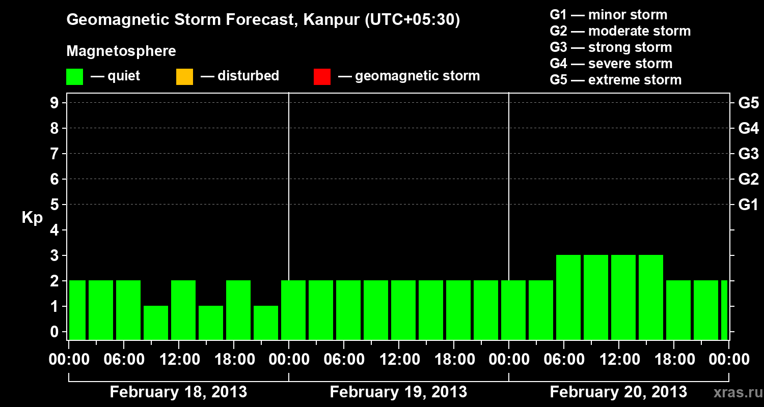 Geomagnetic storm forecast in Kanpur for Feb 18, 2013