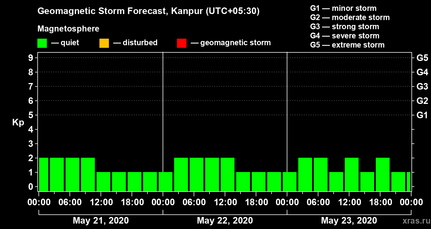 Geomagnetic storm forecast in Kanpur for May 21, 2020