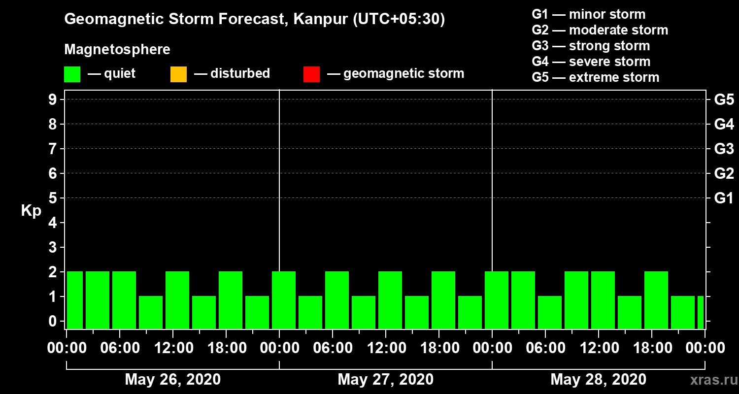 Geomagnetic storm forecast in Kanpur for May 26, 2020