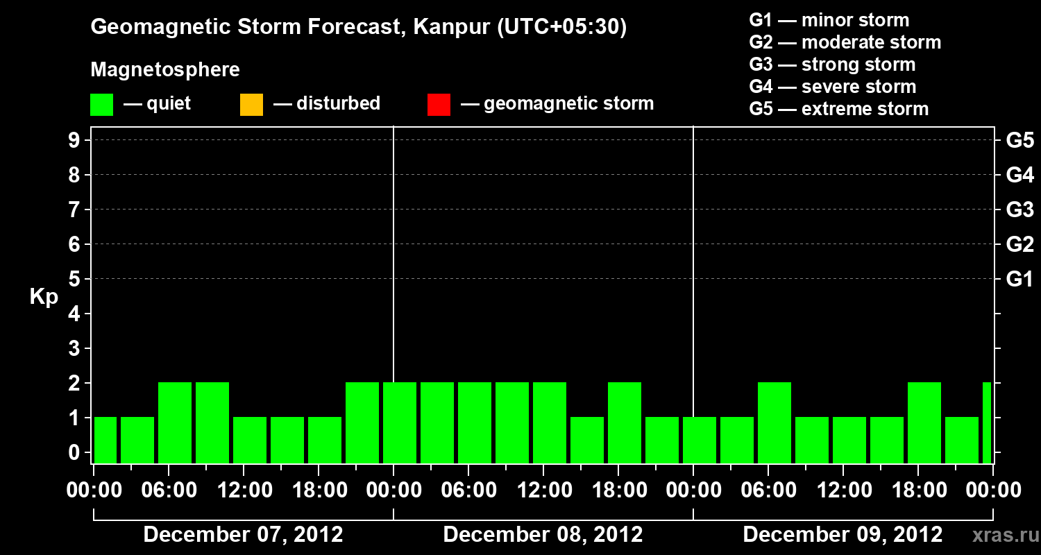 Geomagnetic storm forecast in Kanpur for Dec 07, 2012