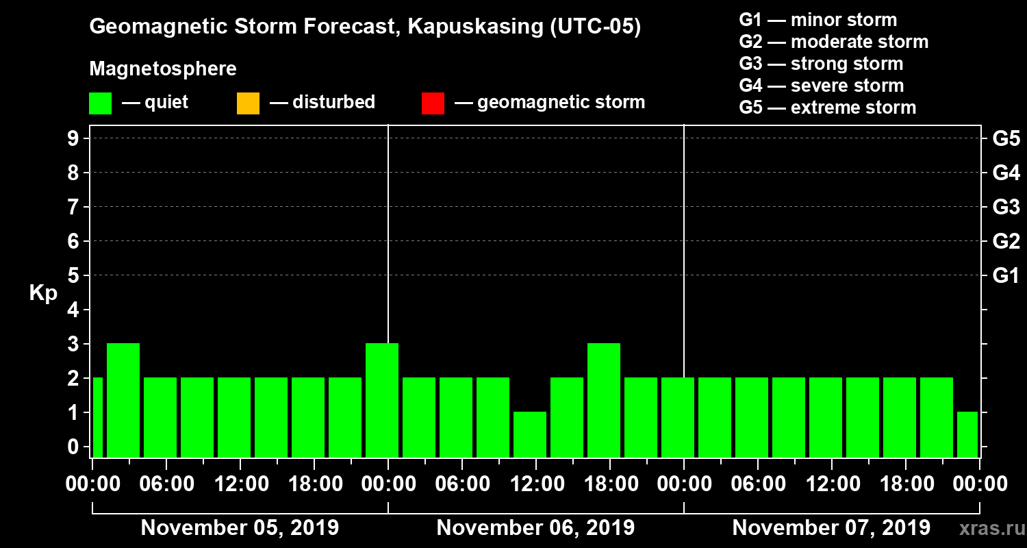 Geomagnetic storm forecast in Kapuskasing for Nov 05, 2019