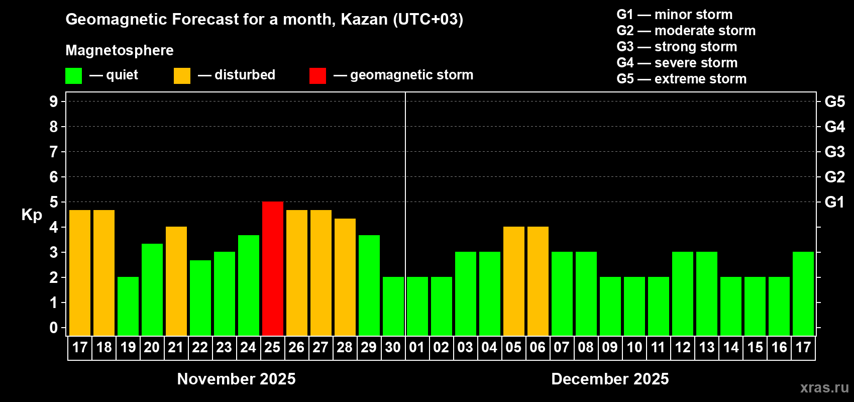 Geomagnetic storm forecast in Kazan for Nov 17, 2025