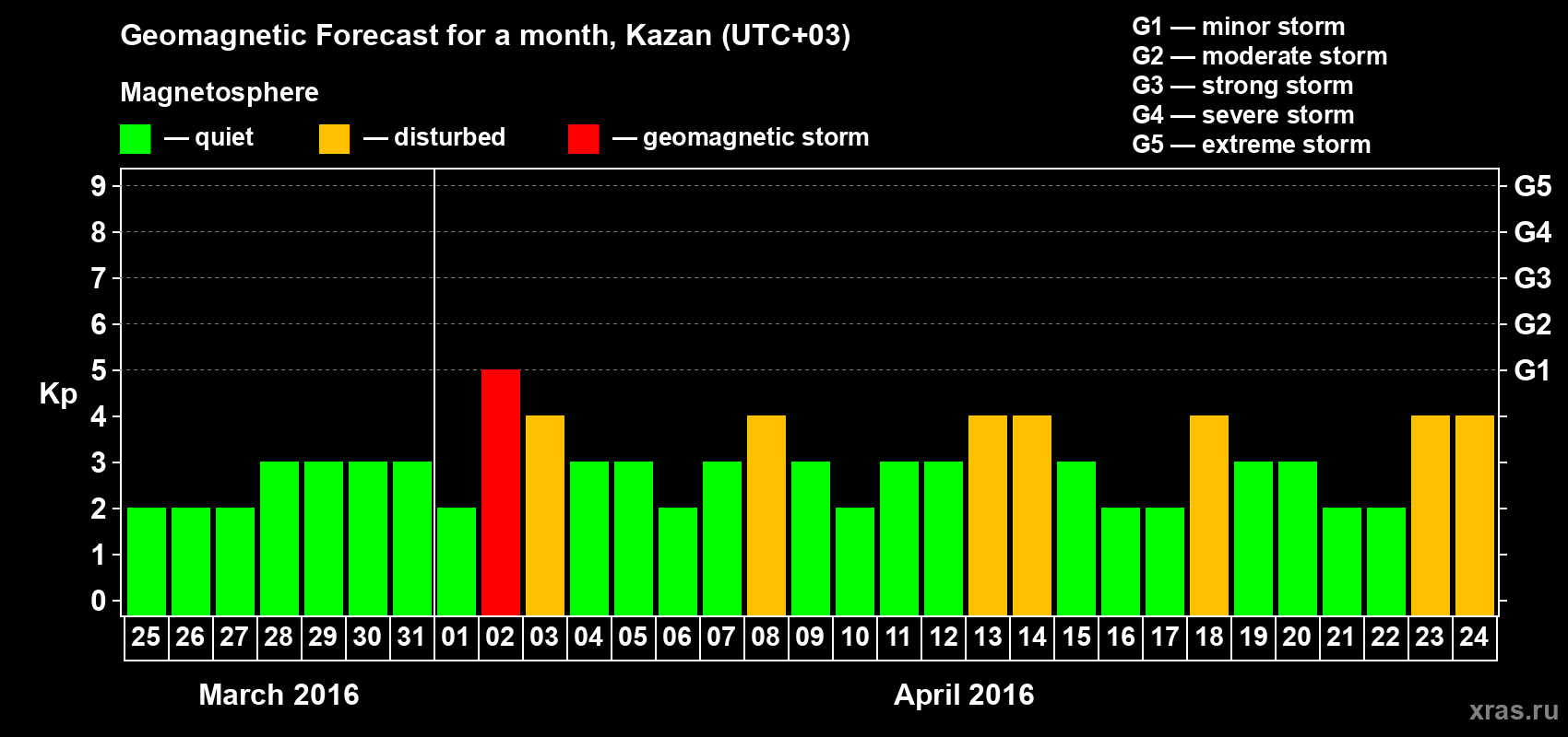 Geomagnetic activity forecast in Kazan — Mar 25, 2016