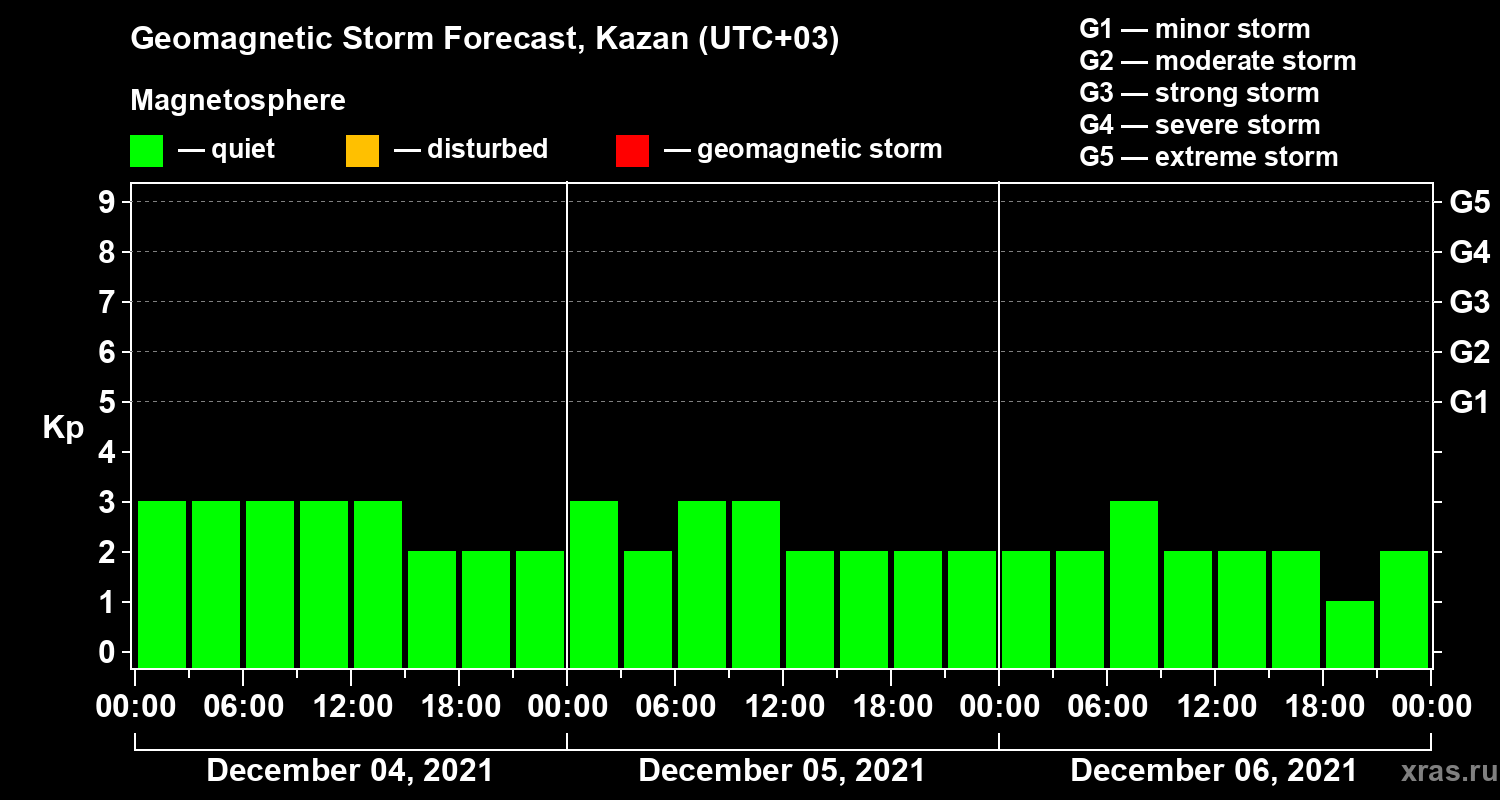 Geomagnetic activity forecast in Kazan — Dec 04, 2021