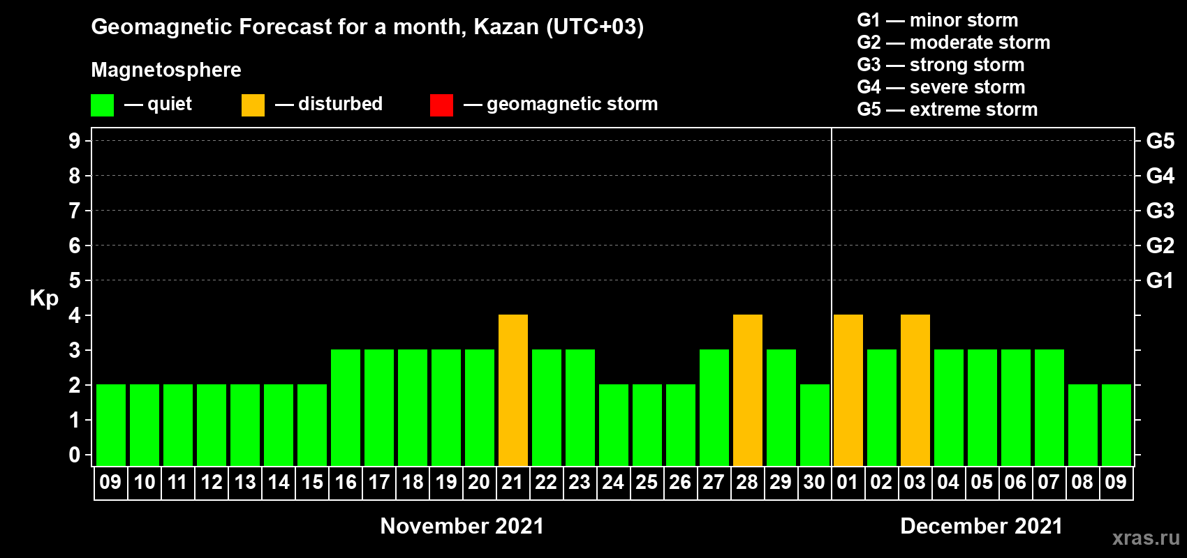 Geomagnetic activity forecast in Kazan — Nov 09, 2021
