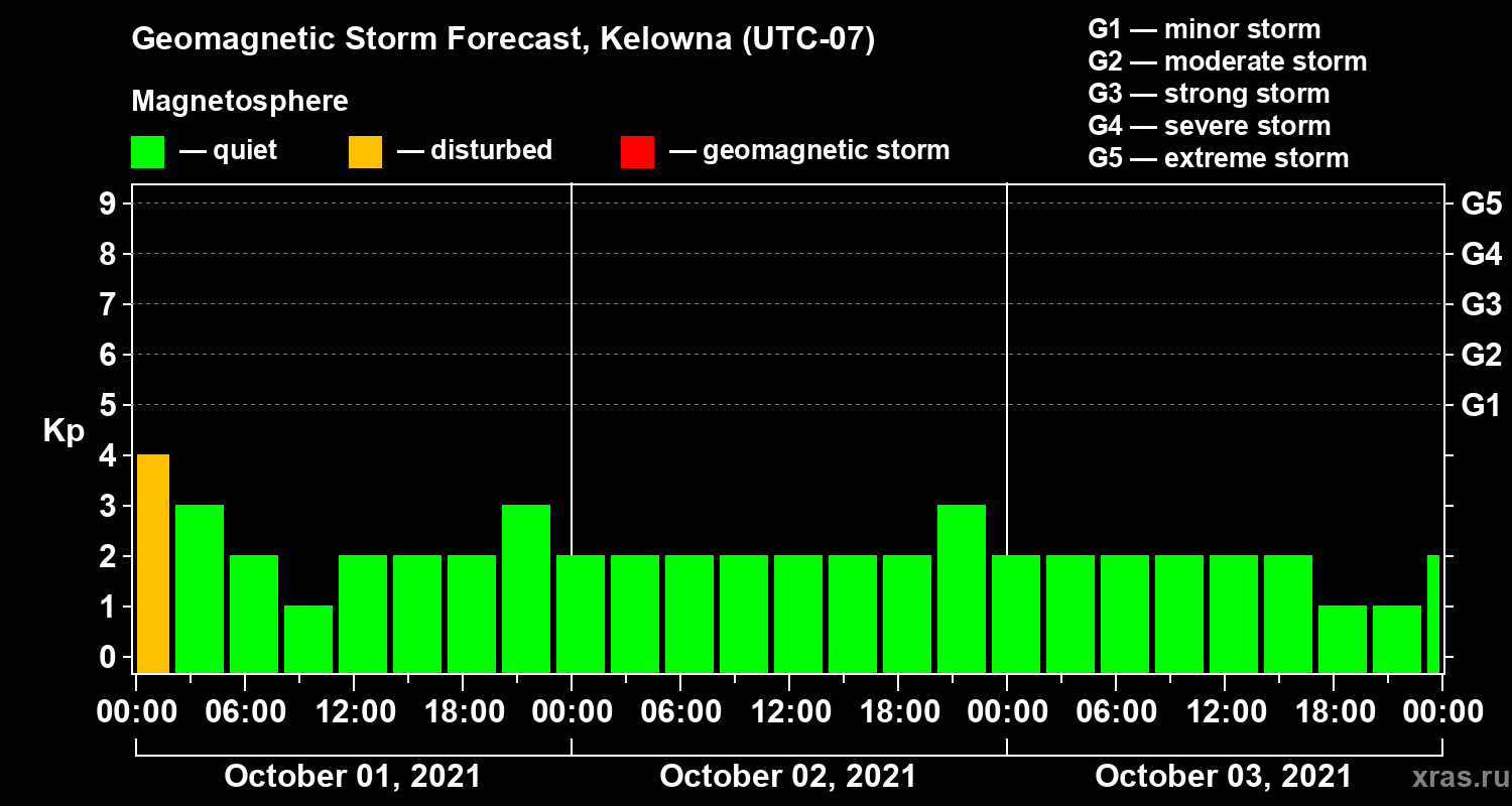Geomagnetic storm forecast in Kelowna for Oct 01, 2021