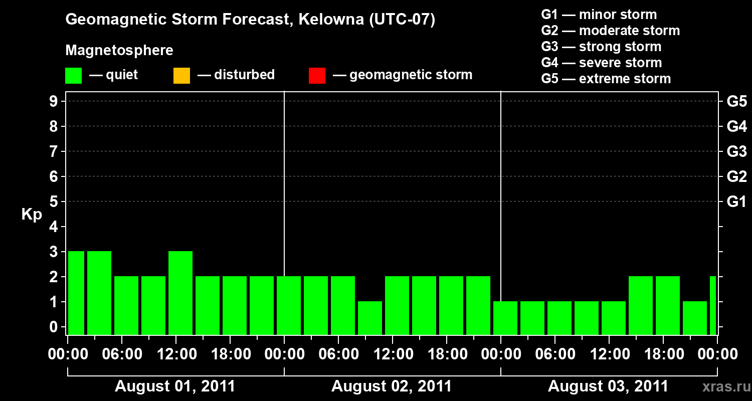 Geomagnetic storm forecast in Kelowna for Aug 01, 2011