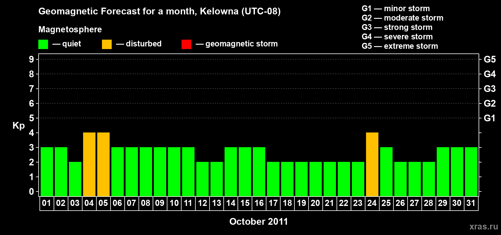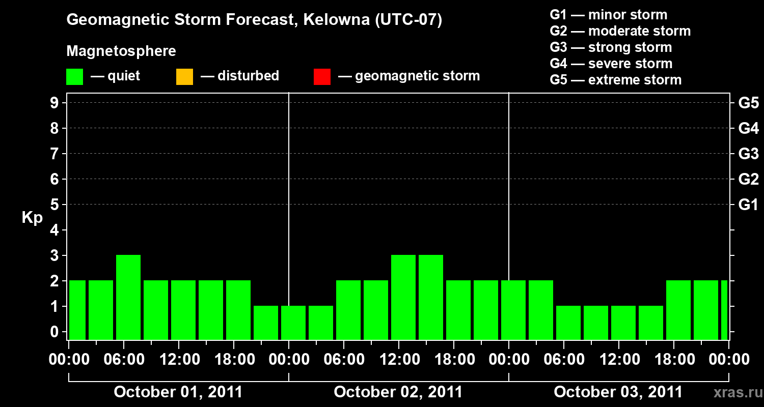Geomagnetic storm forecast in Kelowna for Oct 01, 2011