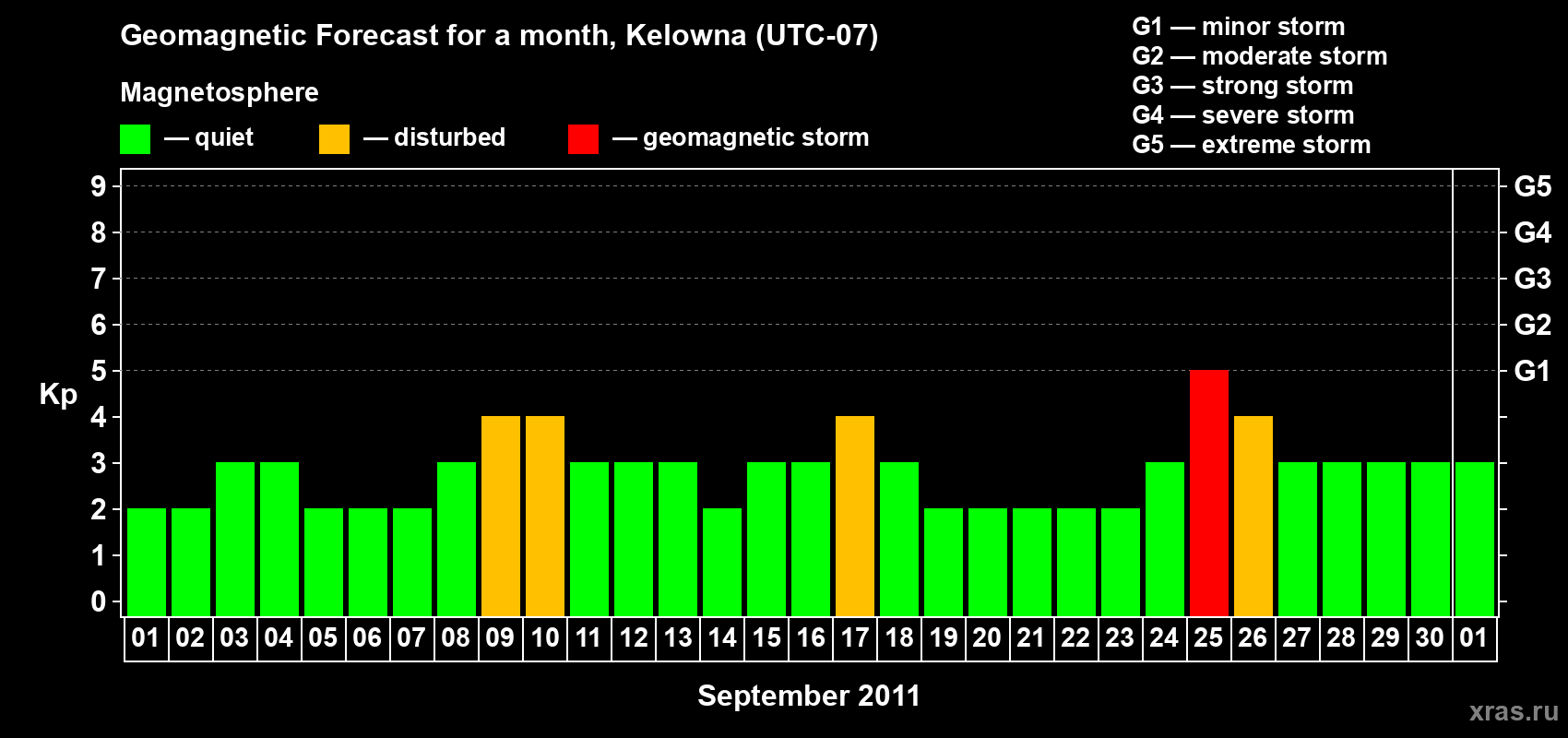 Geomagnetic storm forecast in Kelowna for Sep 01, 2011