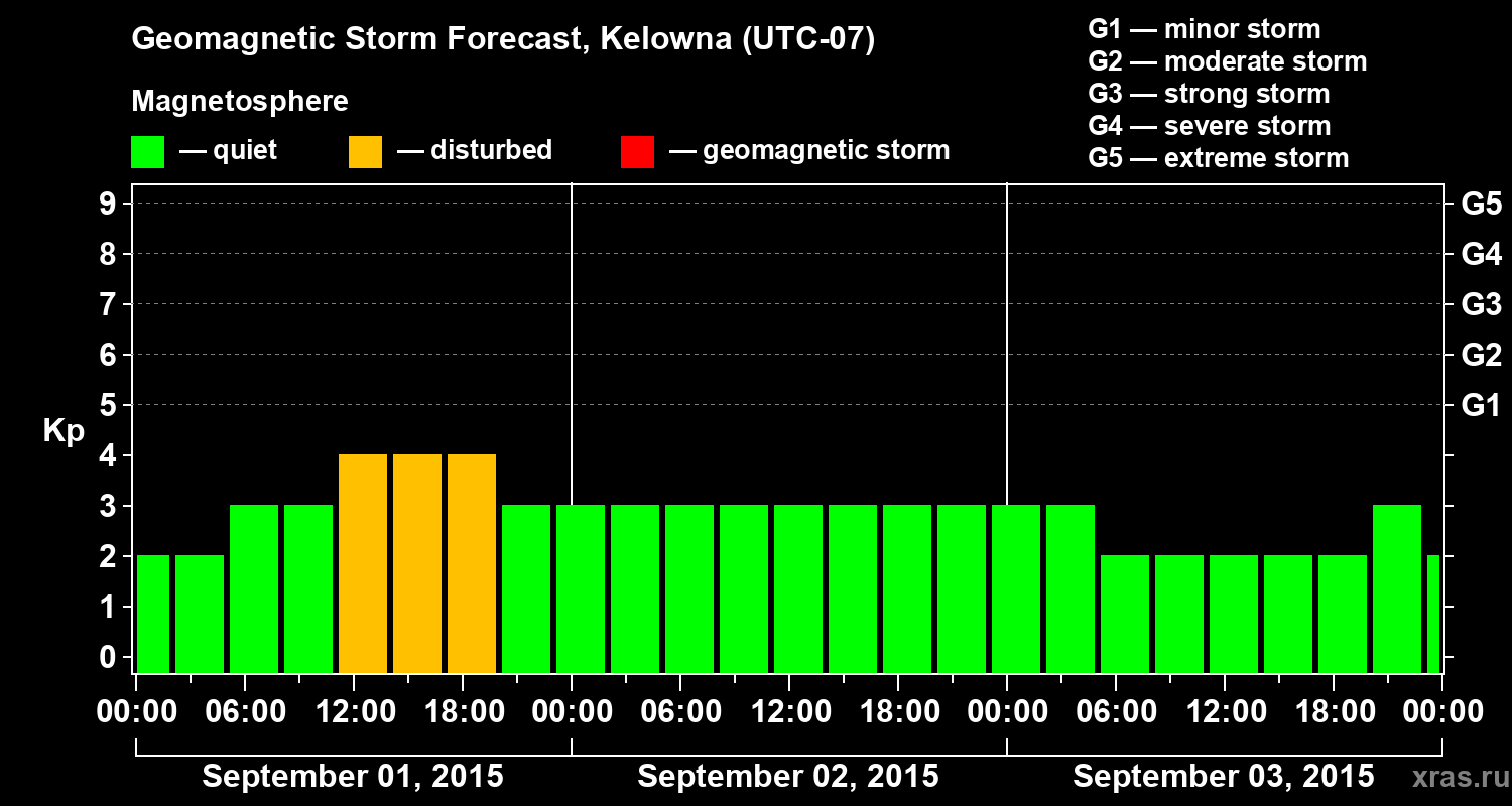 Geomagnetic storm forecast in Kelowna for Sep 01, 2015