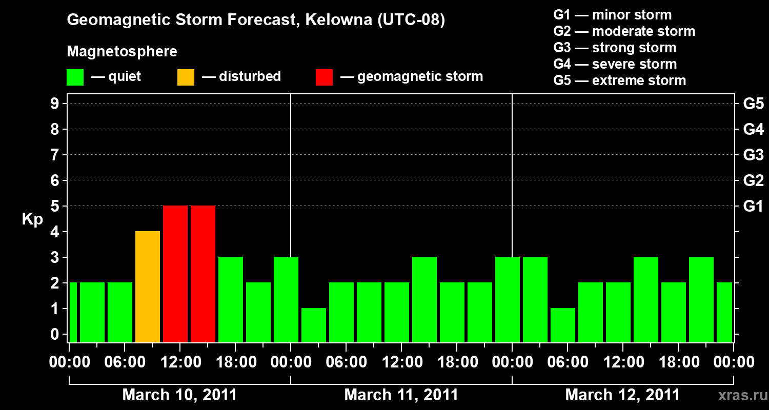 Geomagnetic storm forecast in Kelowna for Mar 10, 2011