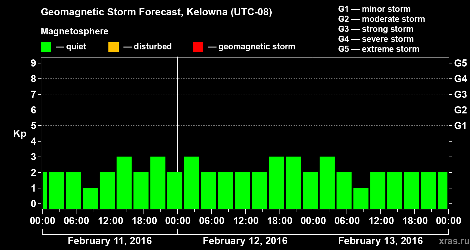 Geomagnetic storm forecast in Kelowna for Feb 11, 2016