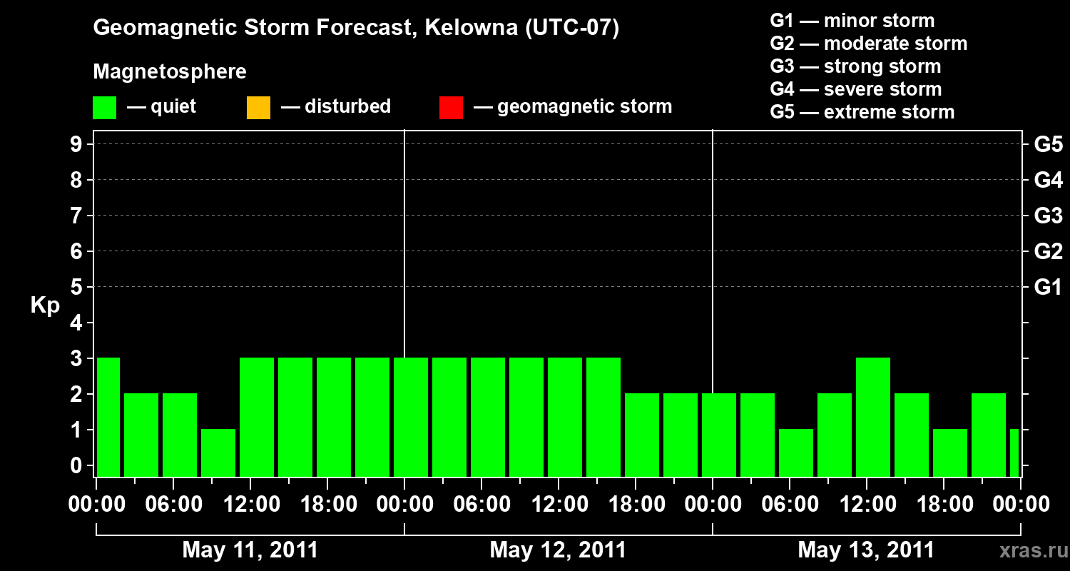 Geomagnetic storm forecast in Kelowna for May 11, 2011