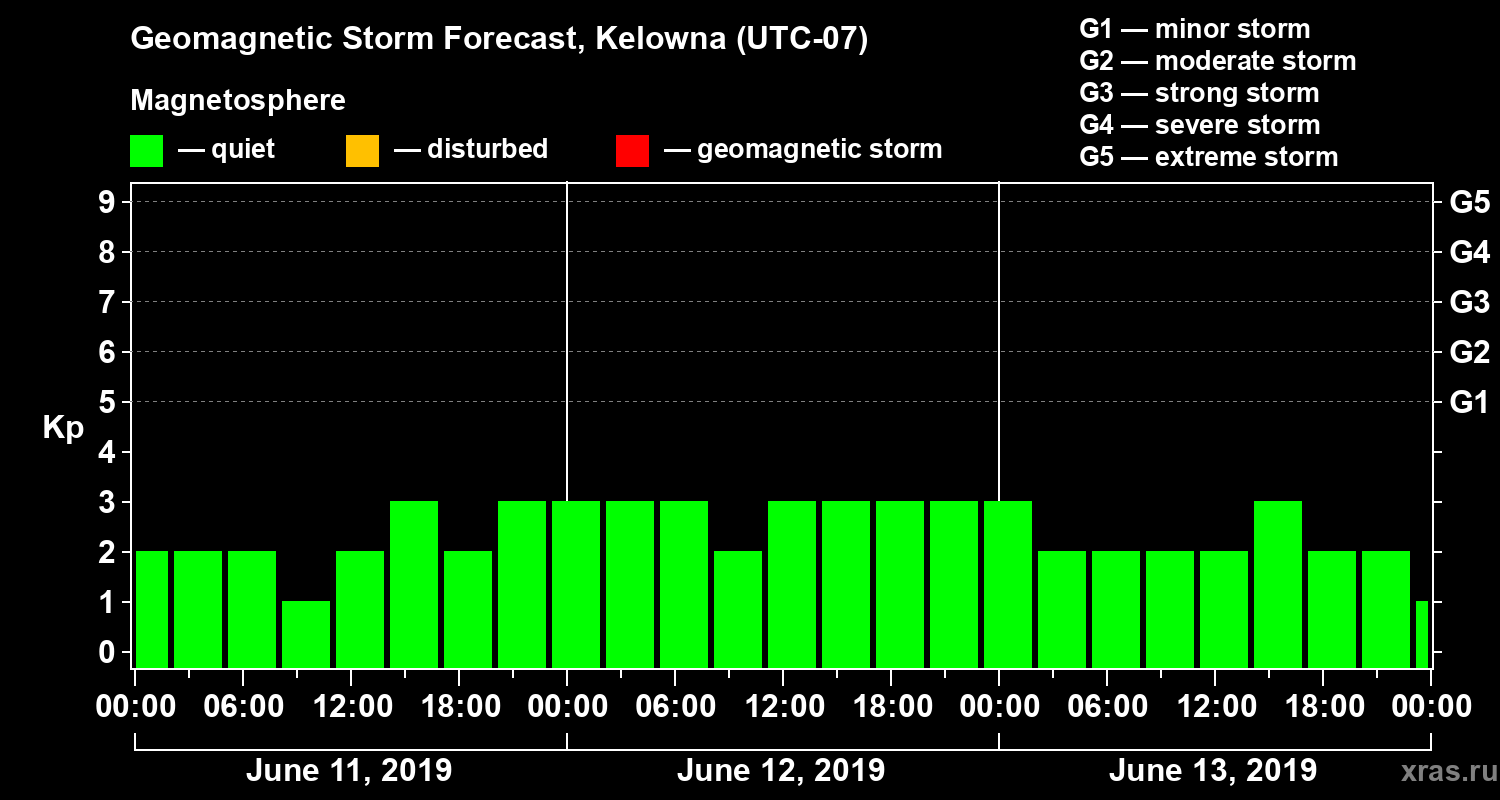 Geomagnetic storm forecast in Kelowna for Jun 11, 2019