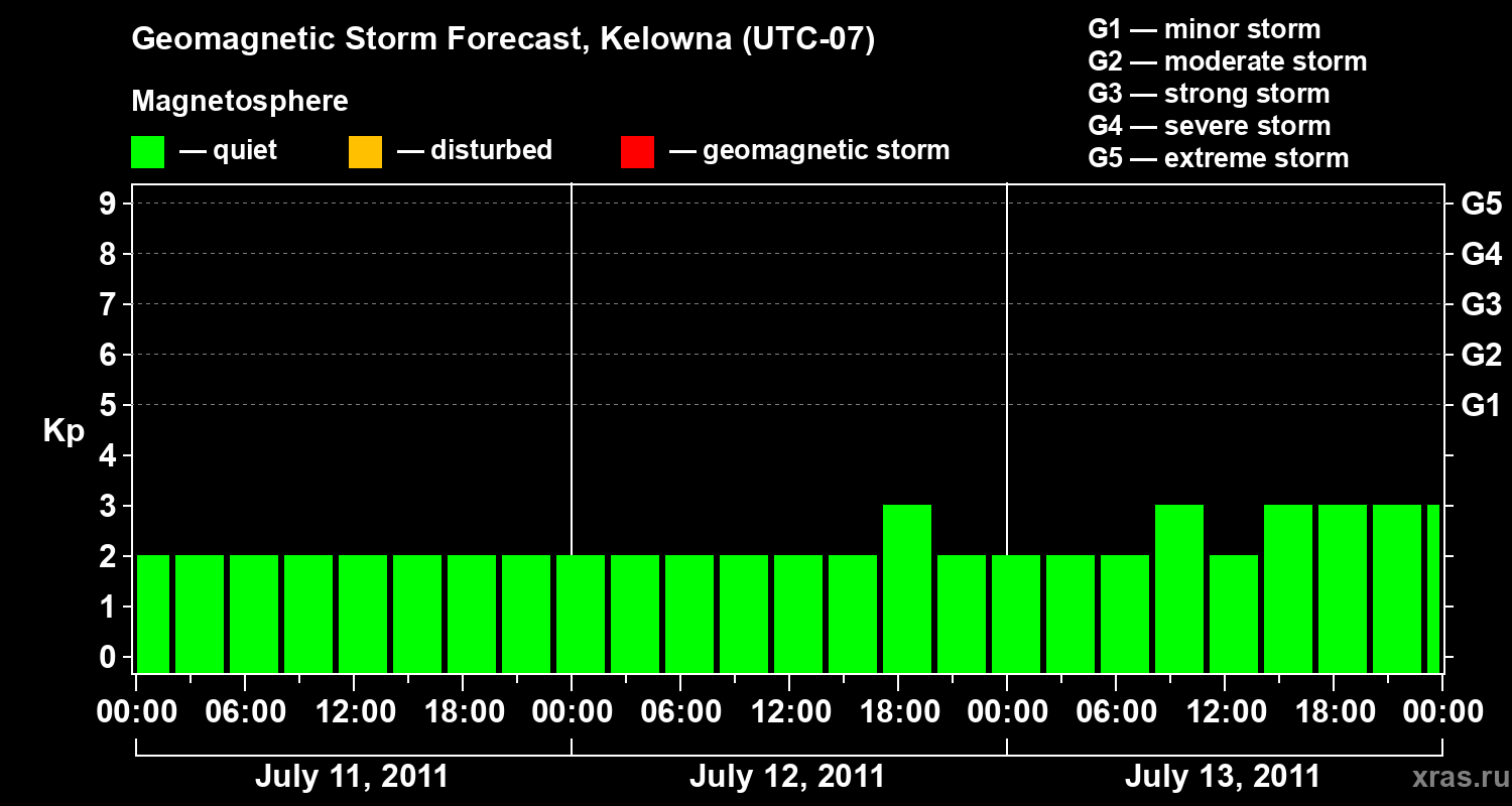 Geomagnetic storm forecast in Kelowna for Jul 11, 2011