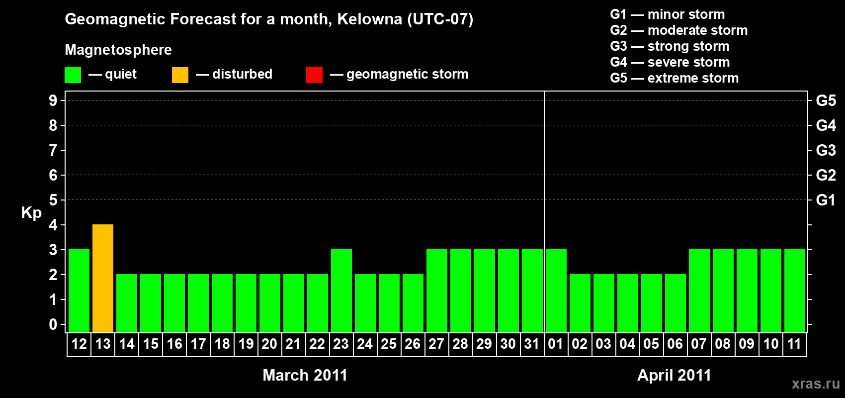 Geomagnetic storm forecast in Kelowna for Mar 12, 2011