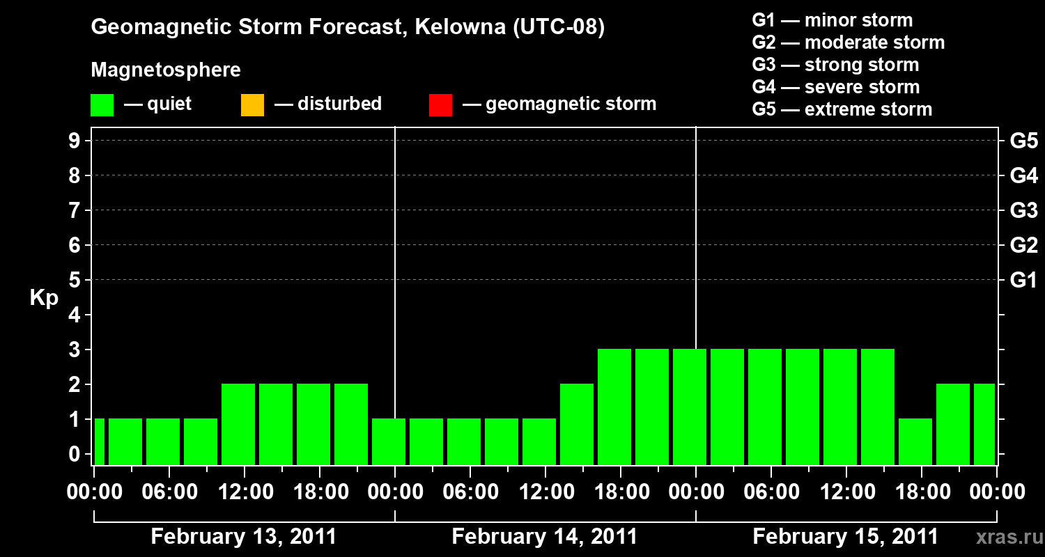 Geomagnetic storm forecast in Kelowna for Feb 13, 2011
