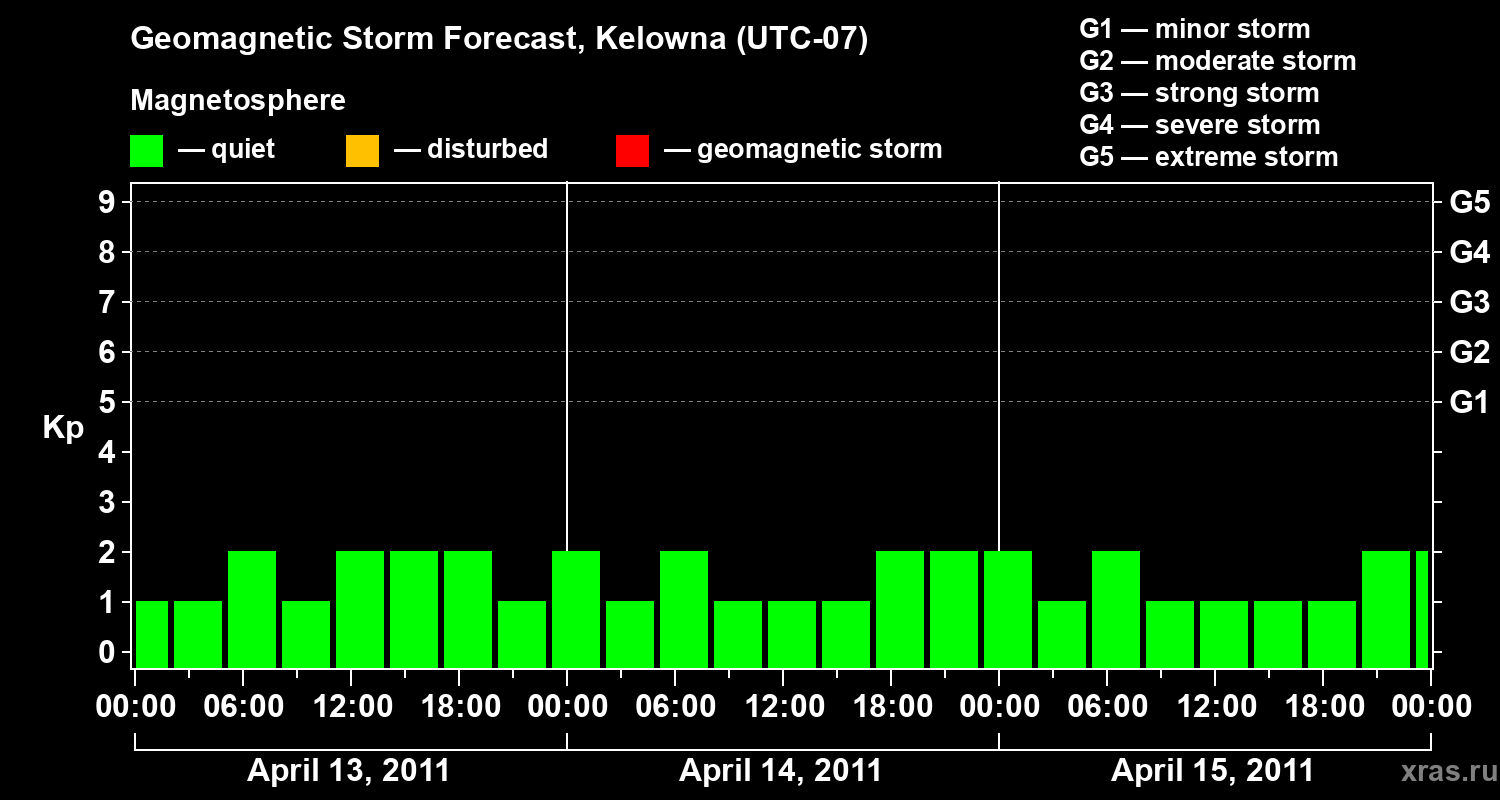 Geomagnetic storm forecast in Kelowna for Apr 13, 2011