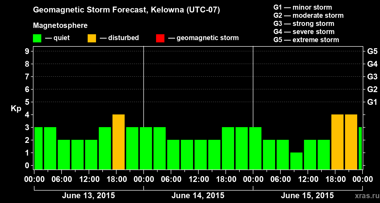Geomagnetic storm forecast in Kelowna for Jun 13, 2015