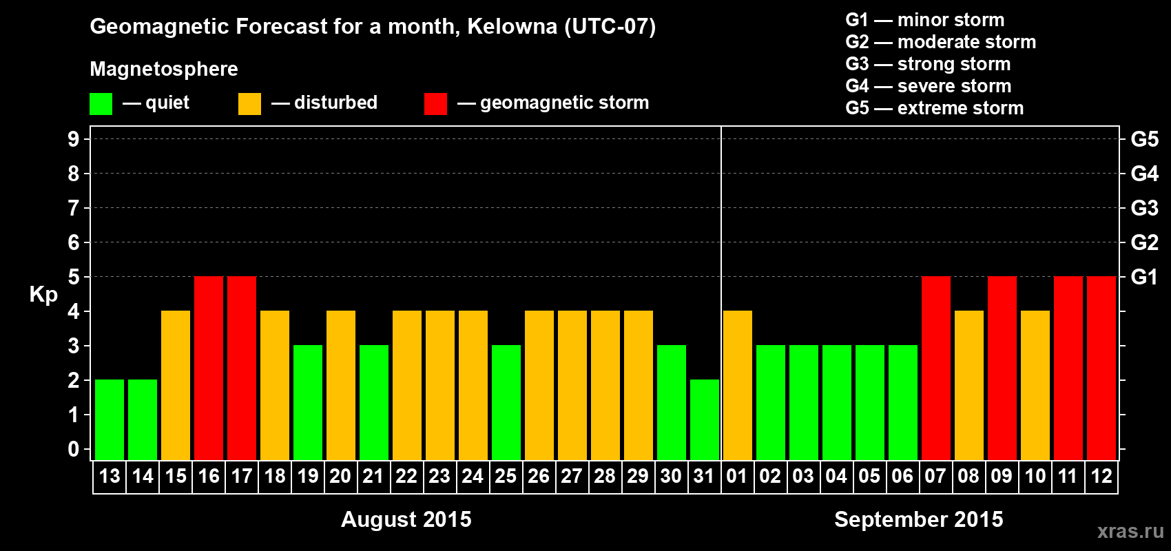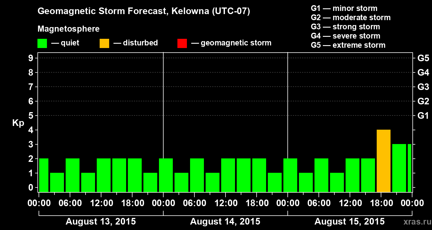 Geomagnetic storm forecast in Kelowna for Aug 13, 2015