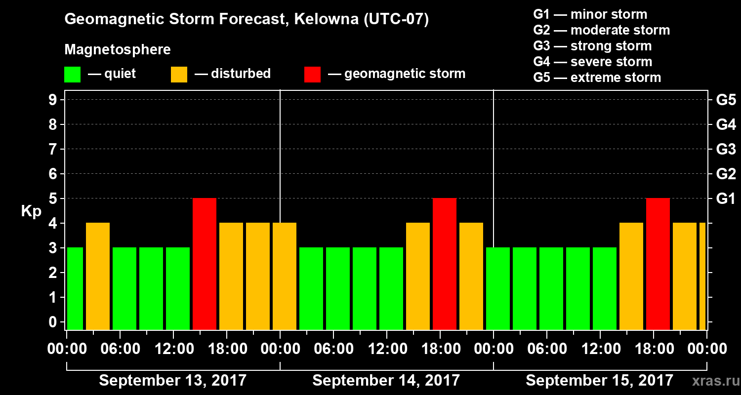 Geomagnetic storm forecast in Kelowna for Sep 13, 2017