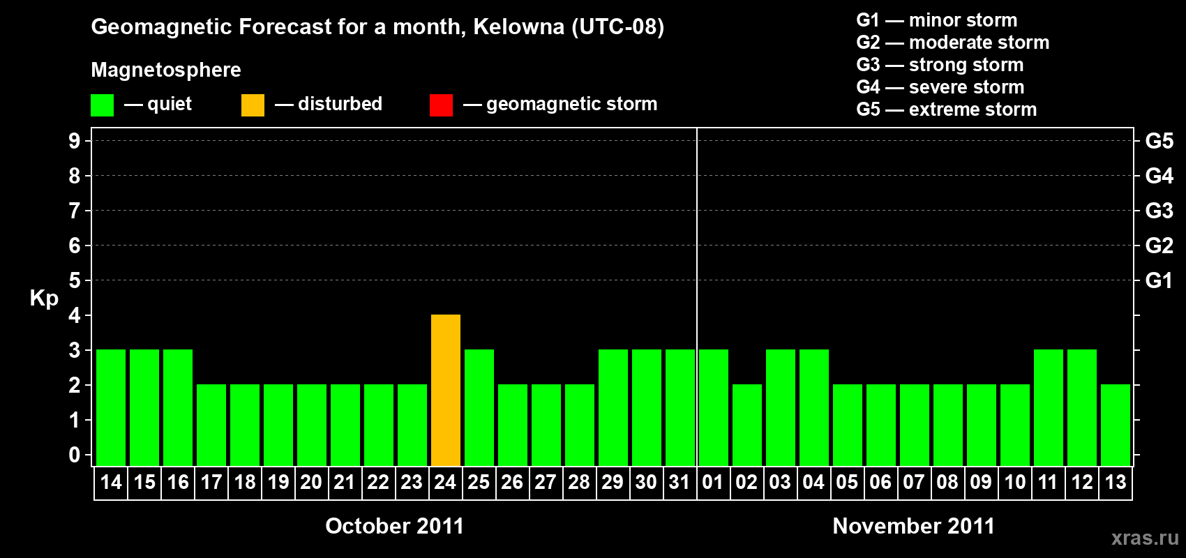 Geomagnetic storm forecast in Kelowna for Oct 14, 2011