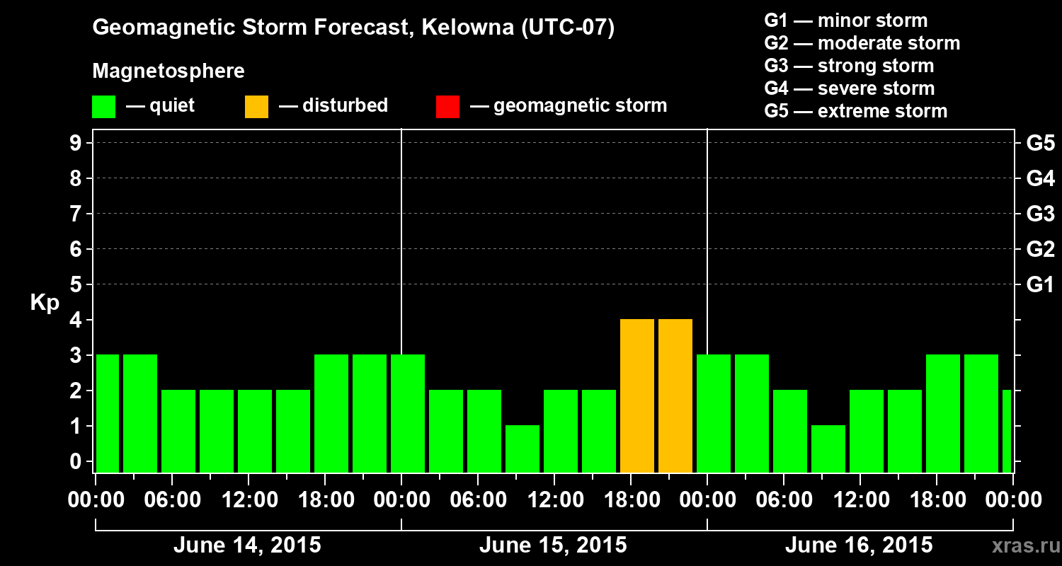 Geomagnetic storm forecast in Kelowna for Jun 14, 2015