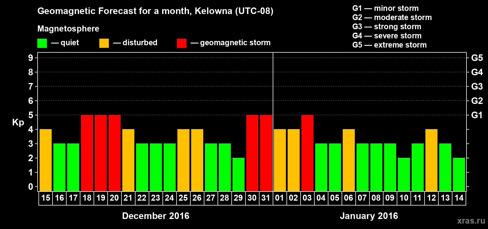 Geomagnetic storm forecast in Kelowna for Dec 15, 2015