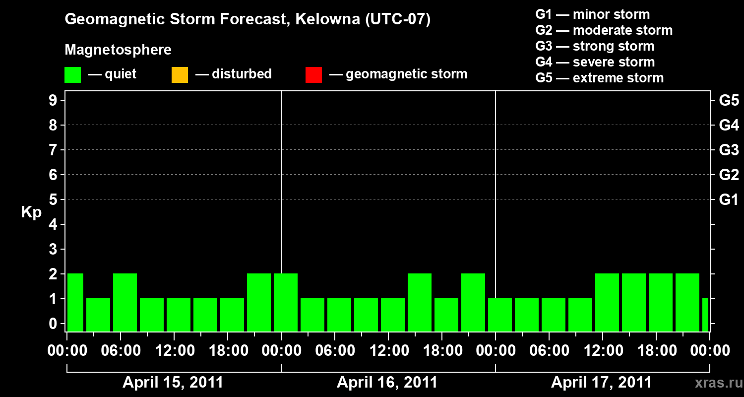 Geomagnetic storm forecast in Kelowna for Apr 15, 2011