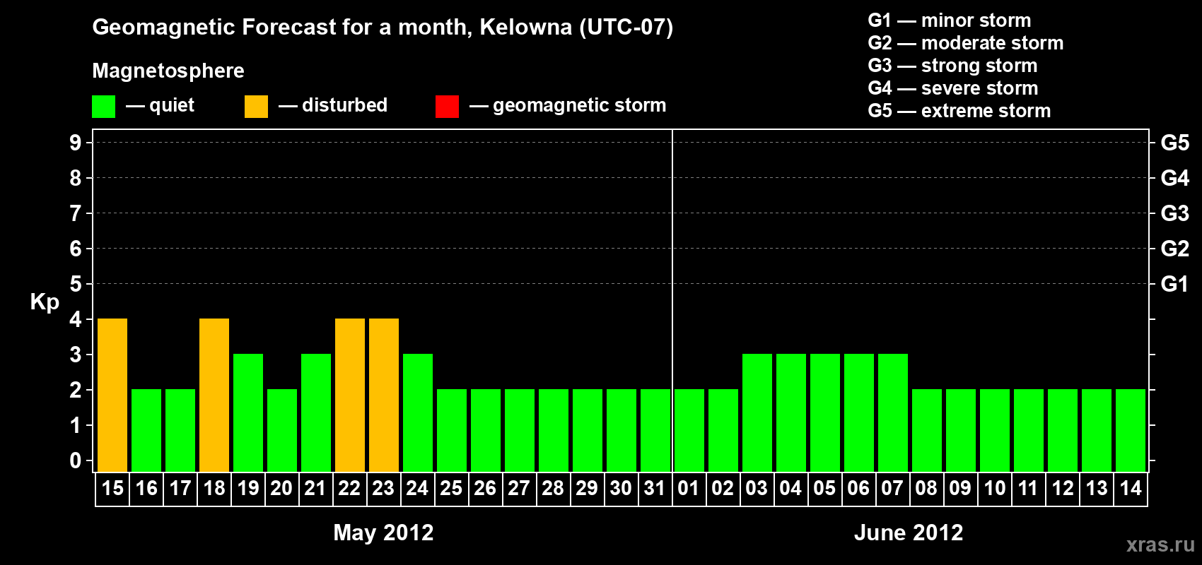 Geomagnetic storm forecast in Kelowna for May 15, 2012