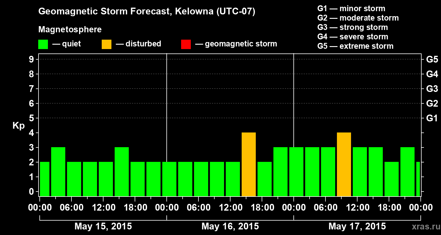 Geomagnetic storm forecast in Kelowna for May 15, 2015