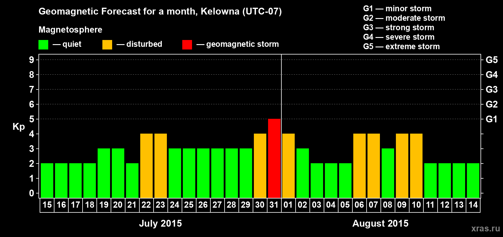 Geomagnetic storm forecast in Kelowna for Jul 15, 2015