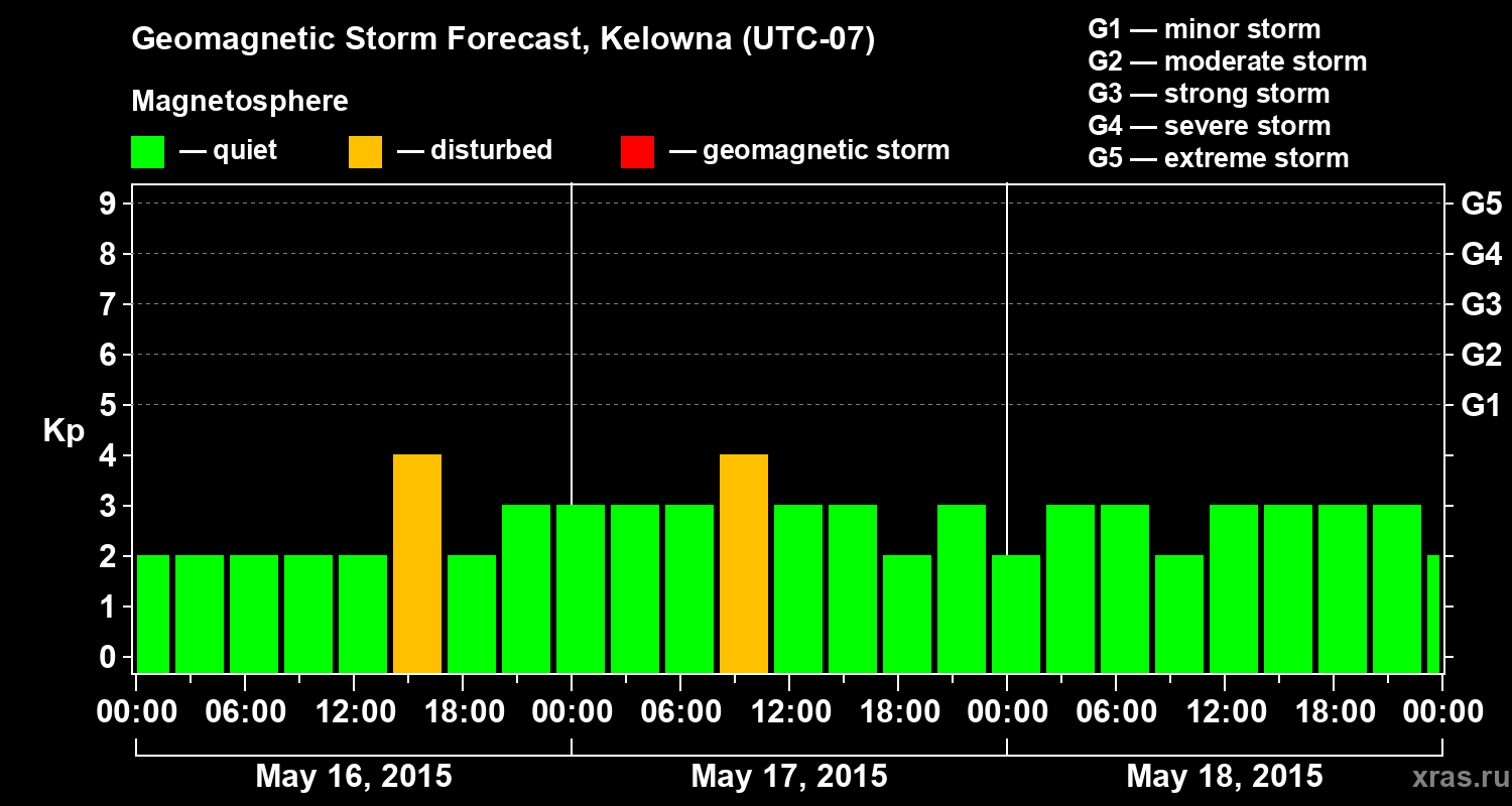 Geomagnetic storm forecast in Kelowna for May 16, 2015