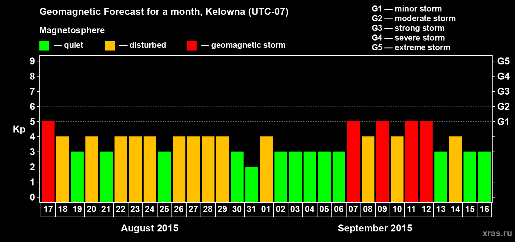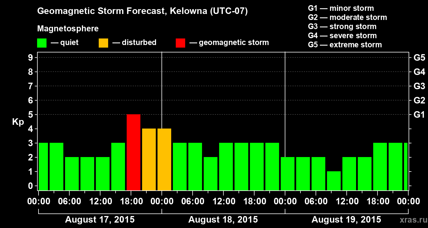 Geomagnetic storm forecast in Kelowna for Aug 17, 2015