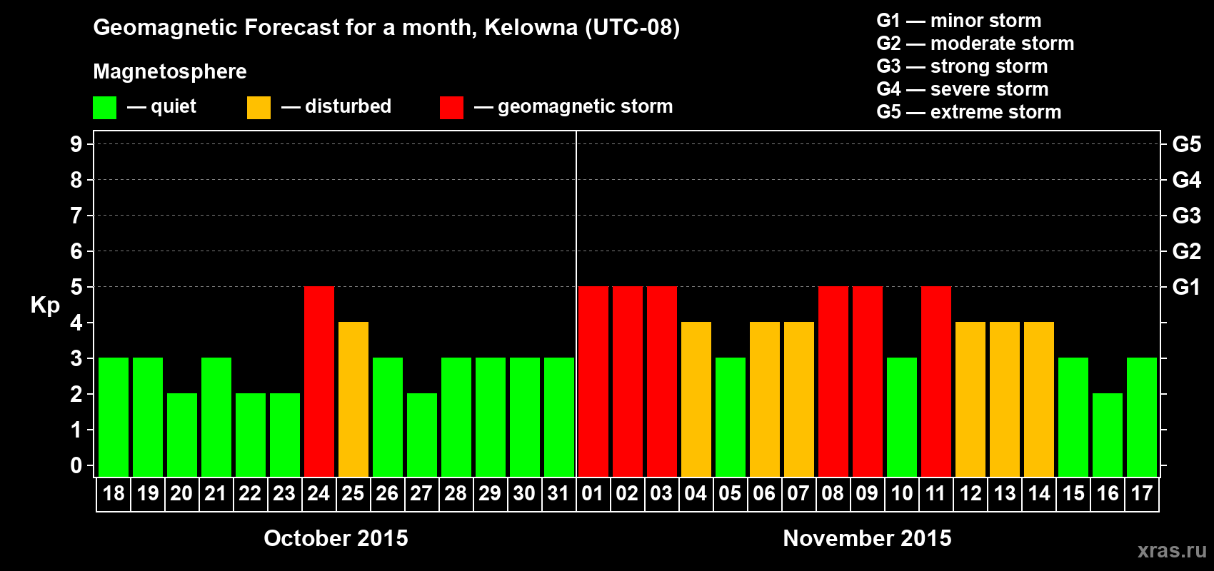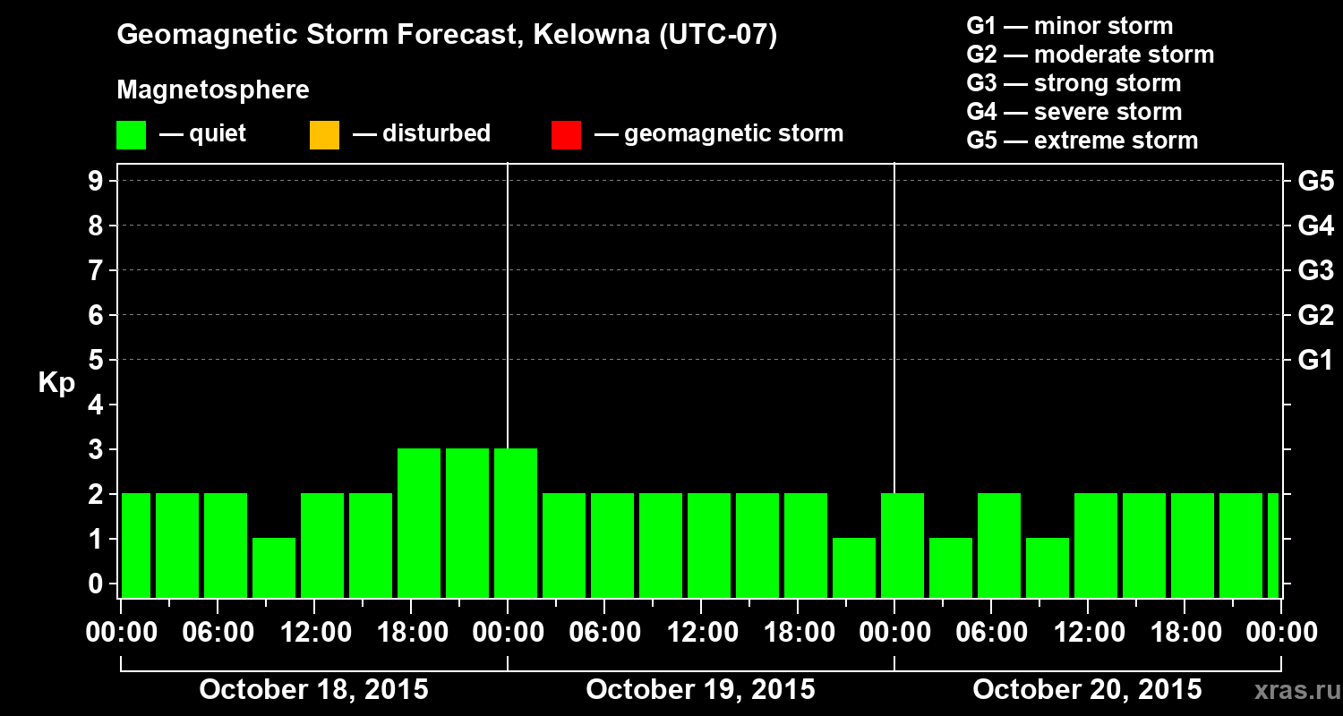 Geomagnetic storm forecast in Kelowna for Oct 18, 2015