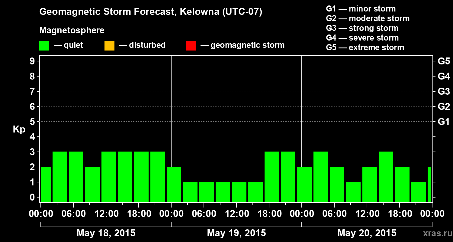 Geomagnetic storm forecast in Kelowna for May 18, 2015