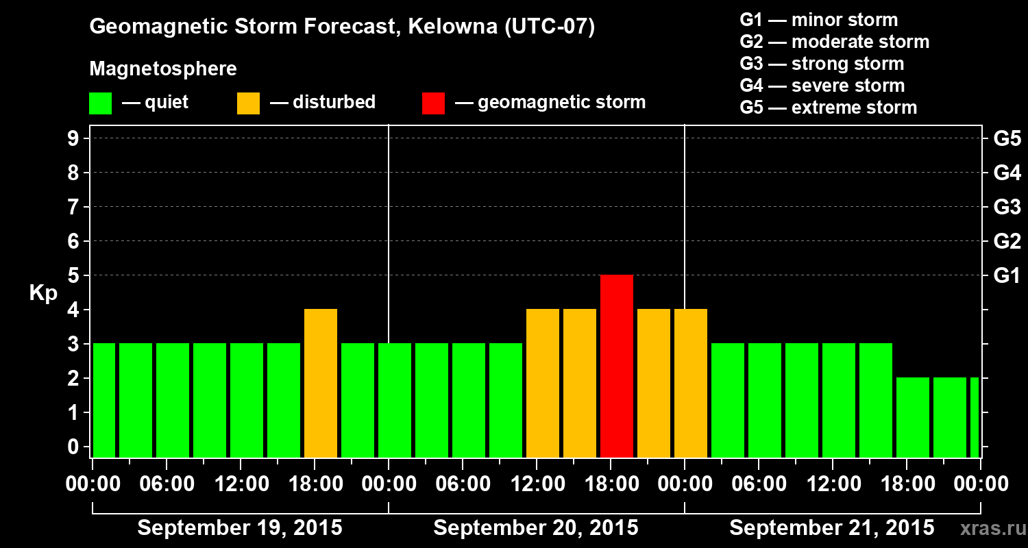 Geomagnetic storm forecast in Kelowna for Sep 19, 2015