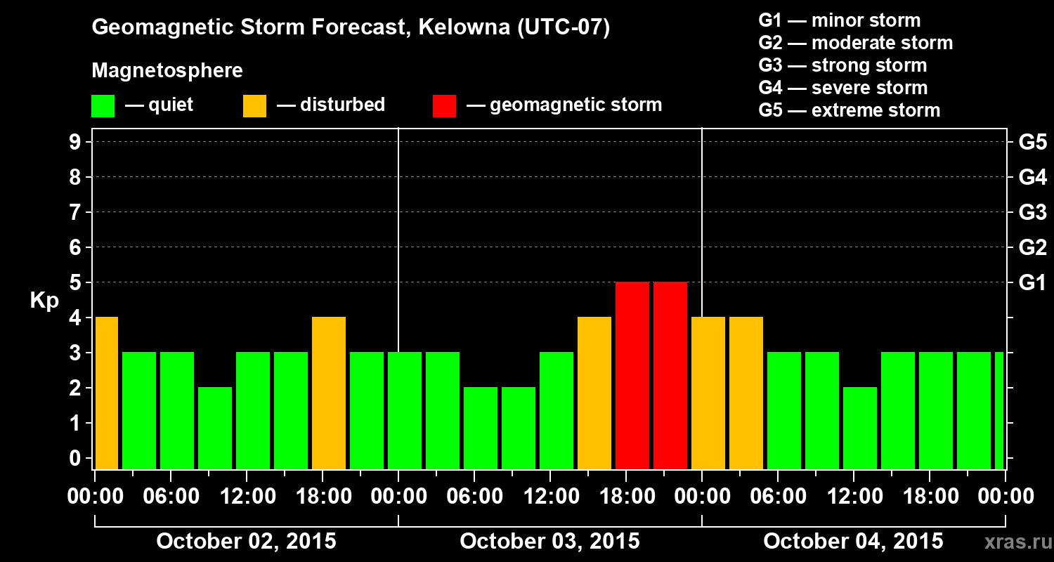 Geomagnetic storm forecast in Kelowna for Oct 02, 2015