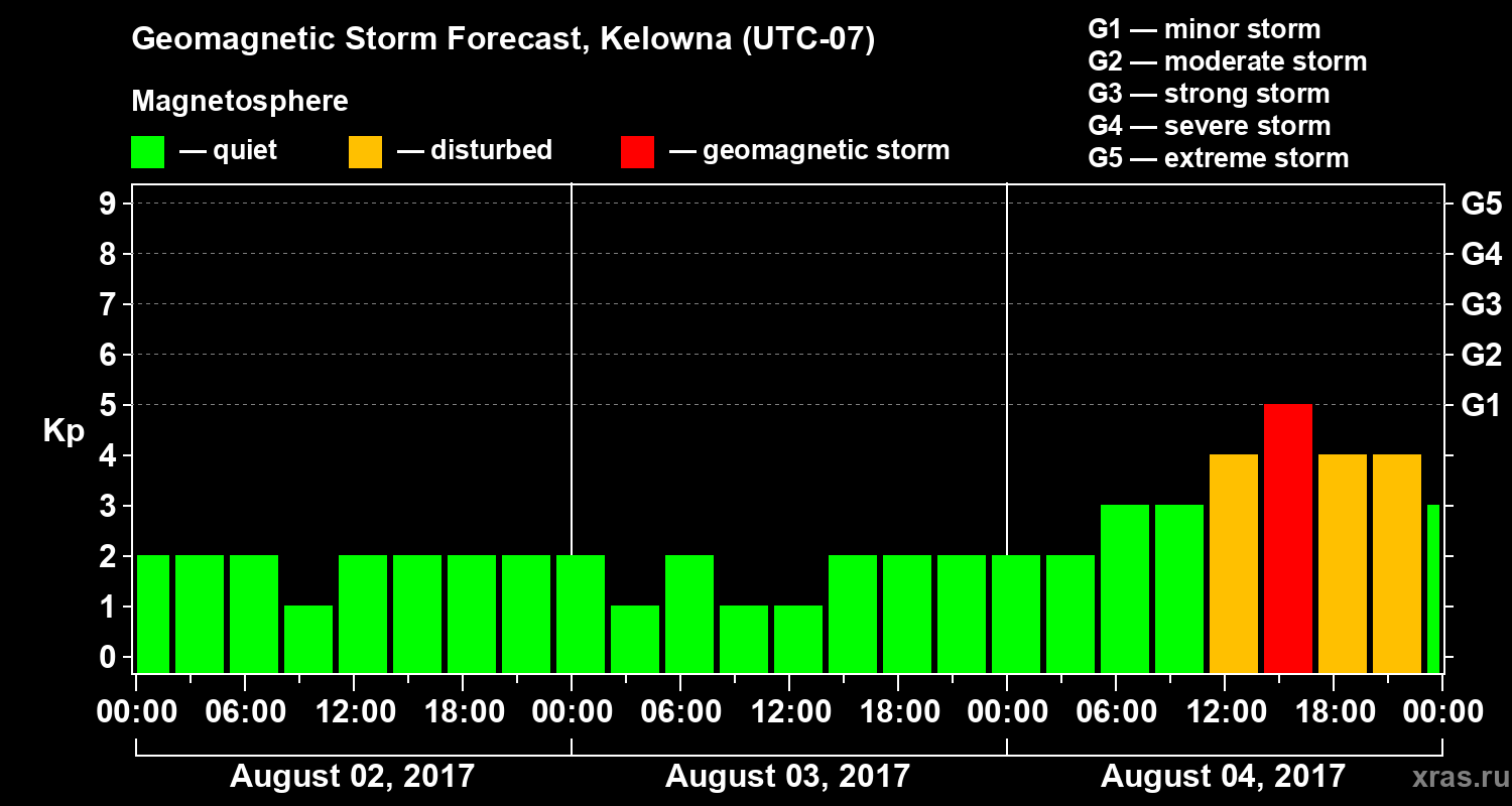 Geomagnetic storm forecast in Kelowna for Aug 02, 2017