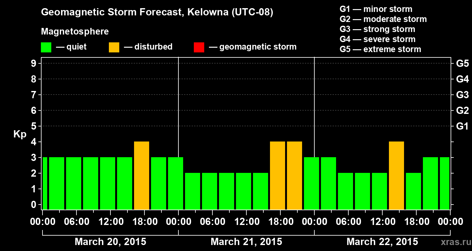 Geomagnetic storm forecast in Kelowna for Mar 20, 2015