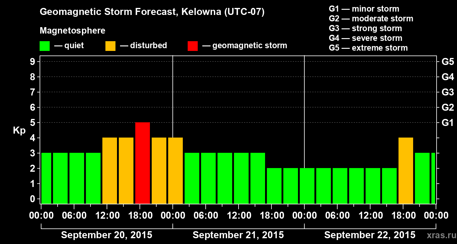 Geomagnetic storm forecast in Kelowna for Sep 20, 2015