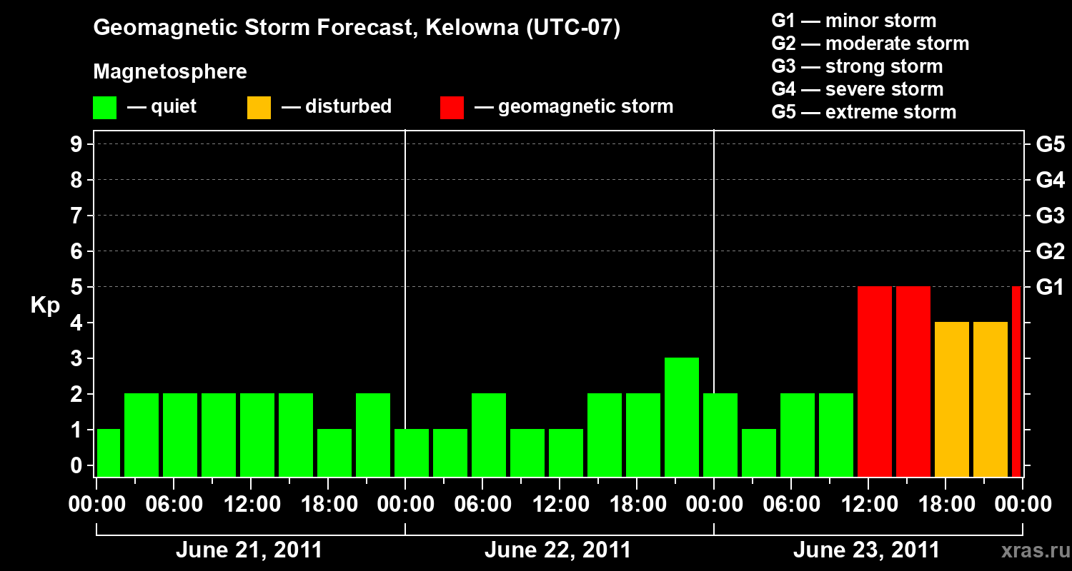 Geomagnetic storm forecast in Kelowna for Jun 21, 2011