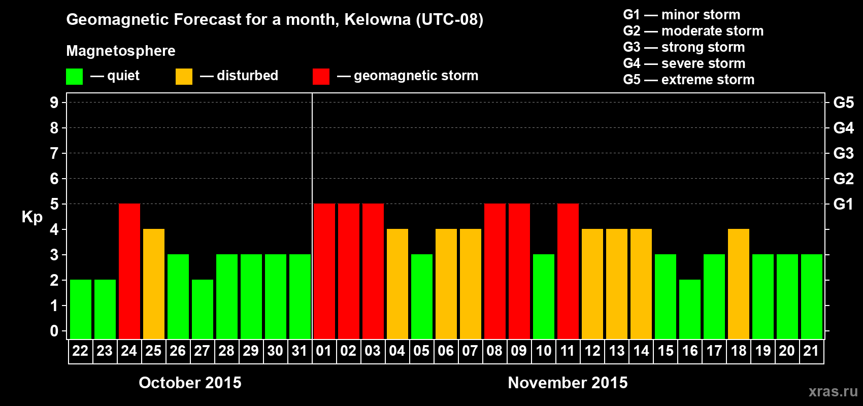 Geomagnetic storm forecast in Kelowna for Oct 22, 2015