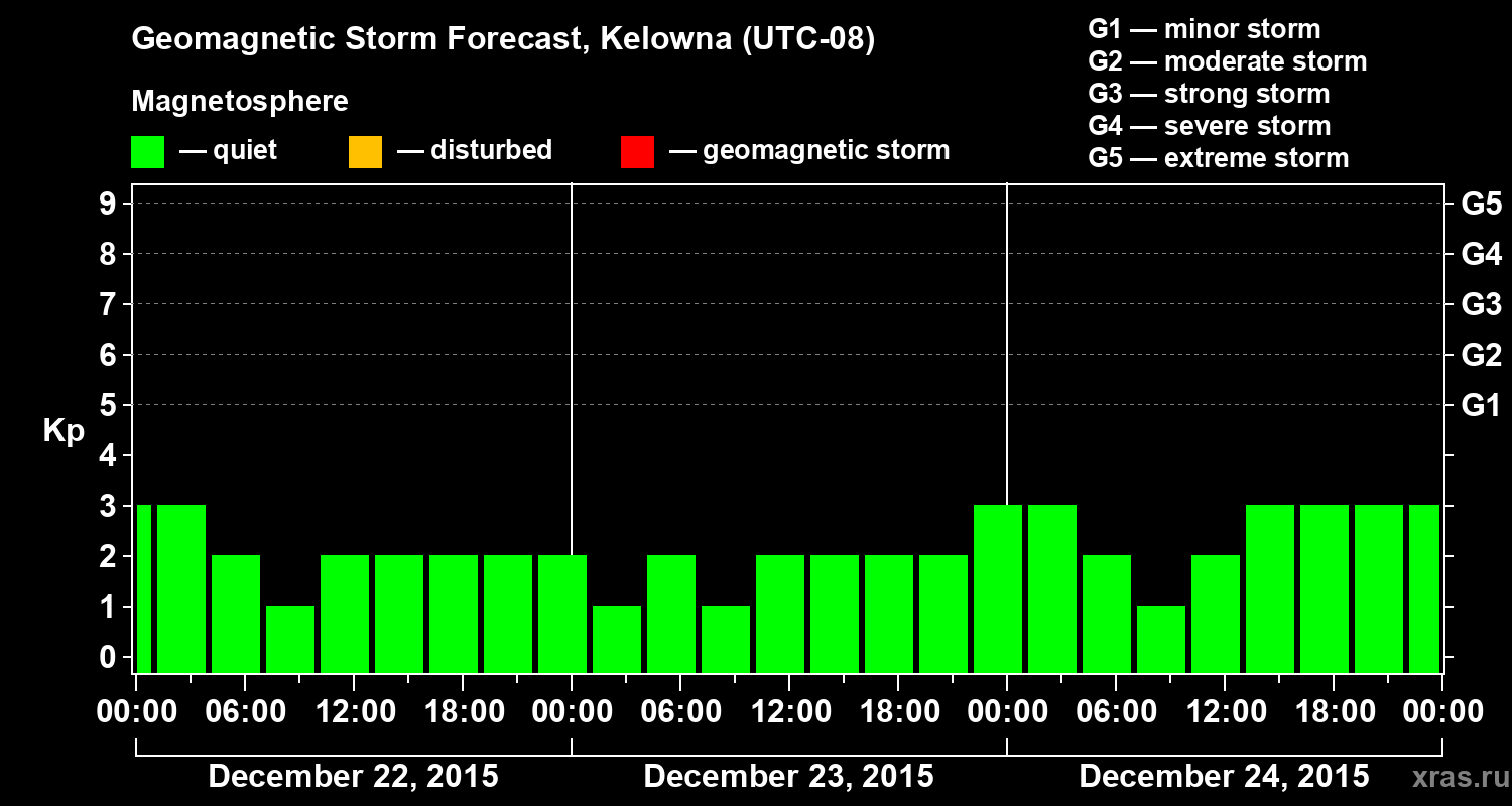 Geomagnetic storm forecast in Kelowna for Dec 22, 2015