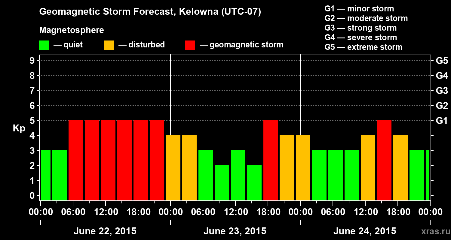 Geomagnetic storm forecast in Kelowna for Jun 22, 2015