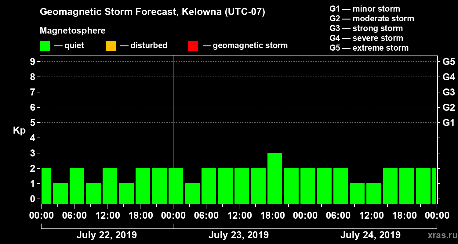 Geomagnetic storm forecast in Kelowna for Jul 22, 2019