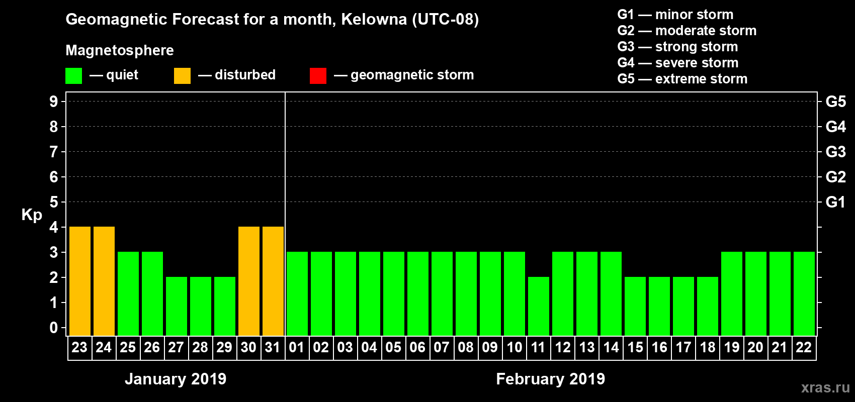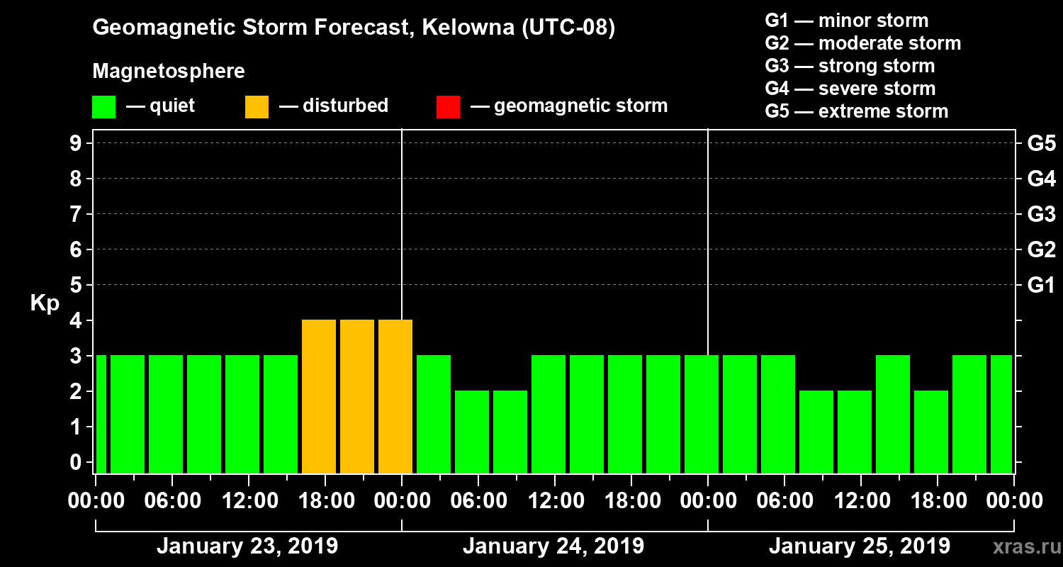 Geomagnetic storm forecast in Kelowna for Jan 23, 2019
